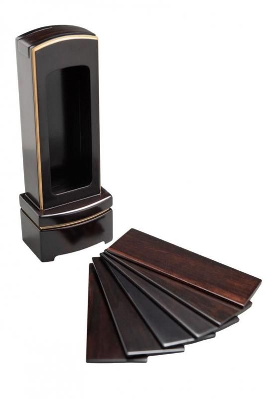 黒檀の比重は重く重厚で、耐久性に優れた高級木材です。油分を含み木肌の緻密さがあることから、古くからお仏壇・お位牌に原材料の使用されてきました。